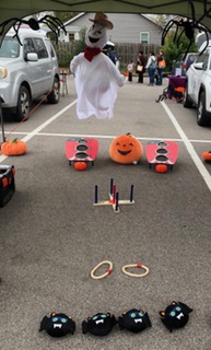 O’Fallon Kiwanis Club members participated in a Trunk or Treat held at the St. Charles County Boys & Girls Club in O’Fallon on October 25th. Kiwanis members Ed, Martha, David and Katie set up a tent next to Katie’s truck. Using a Western theme members decorated a Cowboy Ghost and added spider decorations. Under the tent we offered corn hole games using stuffed bats and a ring toss game. Rubber ducks were given out to kids for playing the games, plus candy! The Liberty High School Key Club decided to come to join in the fun with a truck. 824 kids came through that night. A fun time was had by all.